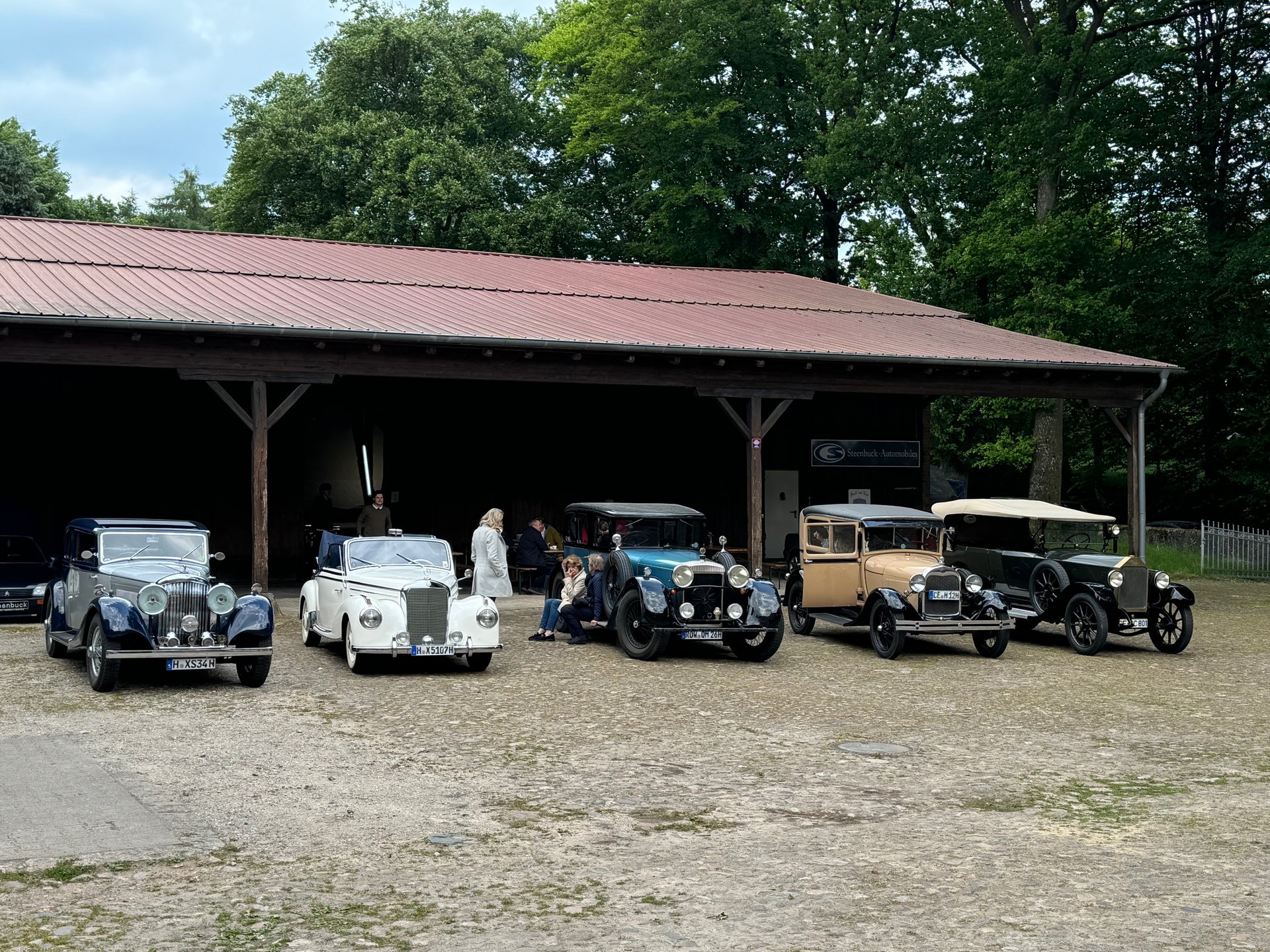Am Nachmittag führte die Route weiter zum Oldtimerhändler Steenbrook in Lübberstedt. Dort wartete nicht nur Kaffee mit klassischem Butterkuchen auf die Teilnehmer, sondern auch eine beeindruckende Ausstellung von klassischen Fahrzeugen aller Baujahre. In entspannter Atmosphäre konnten die Teilnehmer nicht nur ihre eigenen Fahrzeuge begutachten, sondern auch mit dem SB Sachse und seiner Frau fachsimplen sowie in den ausgestellten Modellen probesitzen und sich inspirieren lassen. Für viele war dieser Stopp ein echtes Highlight – eine perfekte Mischung aus Genuss, Technik und Nostalgie.