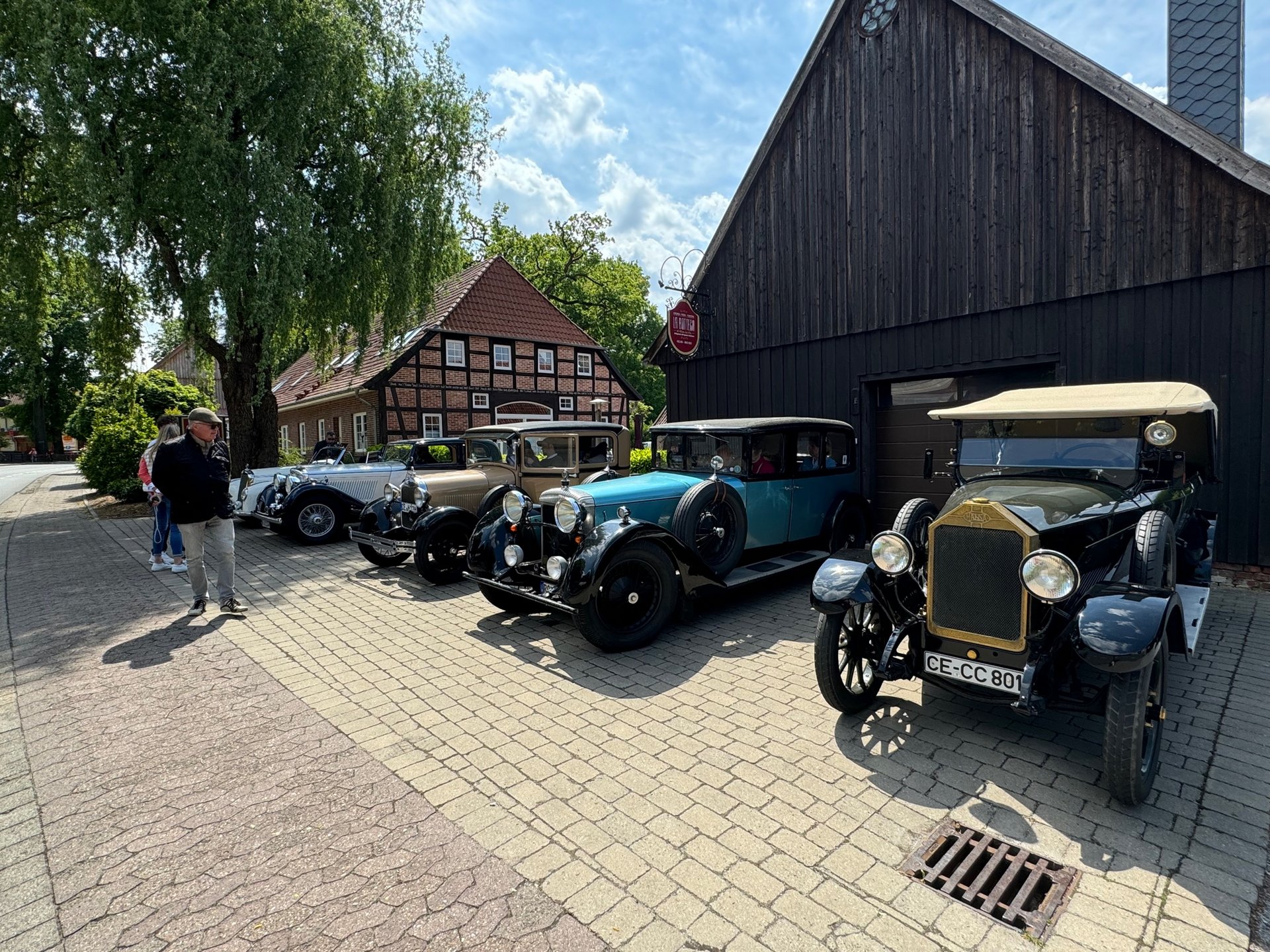 Nach einer abwechslungsreichen ersten Etappe, gestartet in Hanstedt vorbei an Erika und Heidschnucken Ställen ging es quer durch den Naturschutzpark Lüneburger Heide. Besonders authentisch wurde es mit dem kurzen Straßenabschnitt zwischen Hof Sudermühlen und der Gemeinde Egestorf auf dem die Vorkriegsfahrzeuge auf für die damalige Zeit typischem Kopfsteinpflaster unterwegs waren. Ein ganz besonderes Erlebnis.