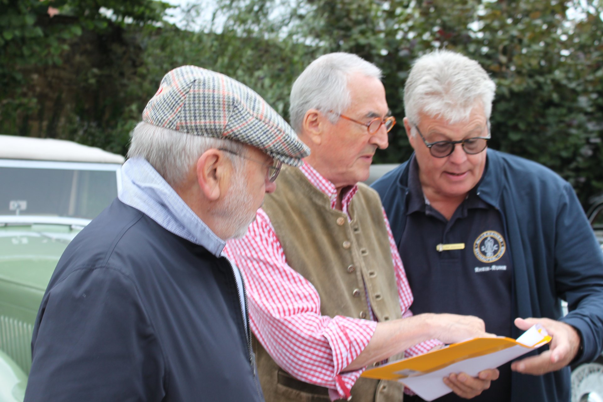 Das Treffen selbst fand im Steigenberger Hotel Bad Pyrmont statt, wo wir phantastisch versorgt wurden und am Vorabend im „Bayrischen Platzl“ unsere Benzingespräche hatten. Der Start erfolgte am Samstagmorgen auf dem Schlossparkplatz der Hämelschenburg in Emmerthal in Richtung Hameln. Nach der Ausgabe des Road-Books, der Bordkarten sowie der Bekanntgabe des Ablaufs in der Fahrerbesprechung wurde hier der Wettbewerb wie bekannt im Minutentakt losgefahren.