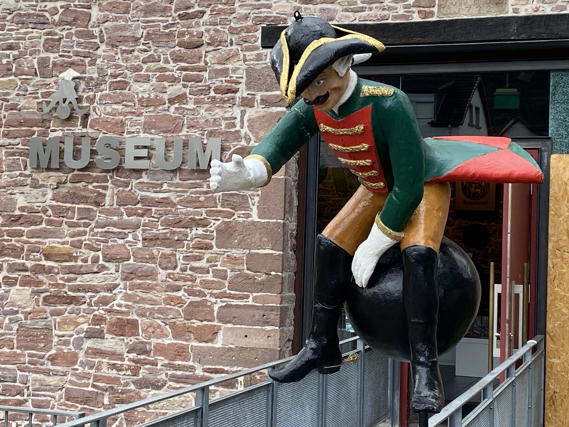Danach ging es mit der Fähre über die Weser und nach Bodenwerder zum gemeinsamen zünftigen Mittagessen. Natürlich wurde auch der Baron von Münchhausen besucht, der hier immer noch auf seiner Kanonenkugel sitzt!!
